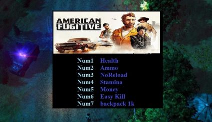 Трейнер для игры American Fugitive версии v1.0.17341 с 7ю возможностями. Распакуйте содержимое архива, запустите трейнер и затем игру. Во время игры