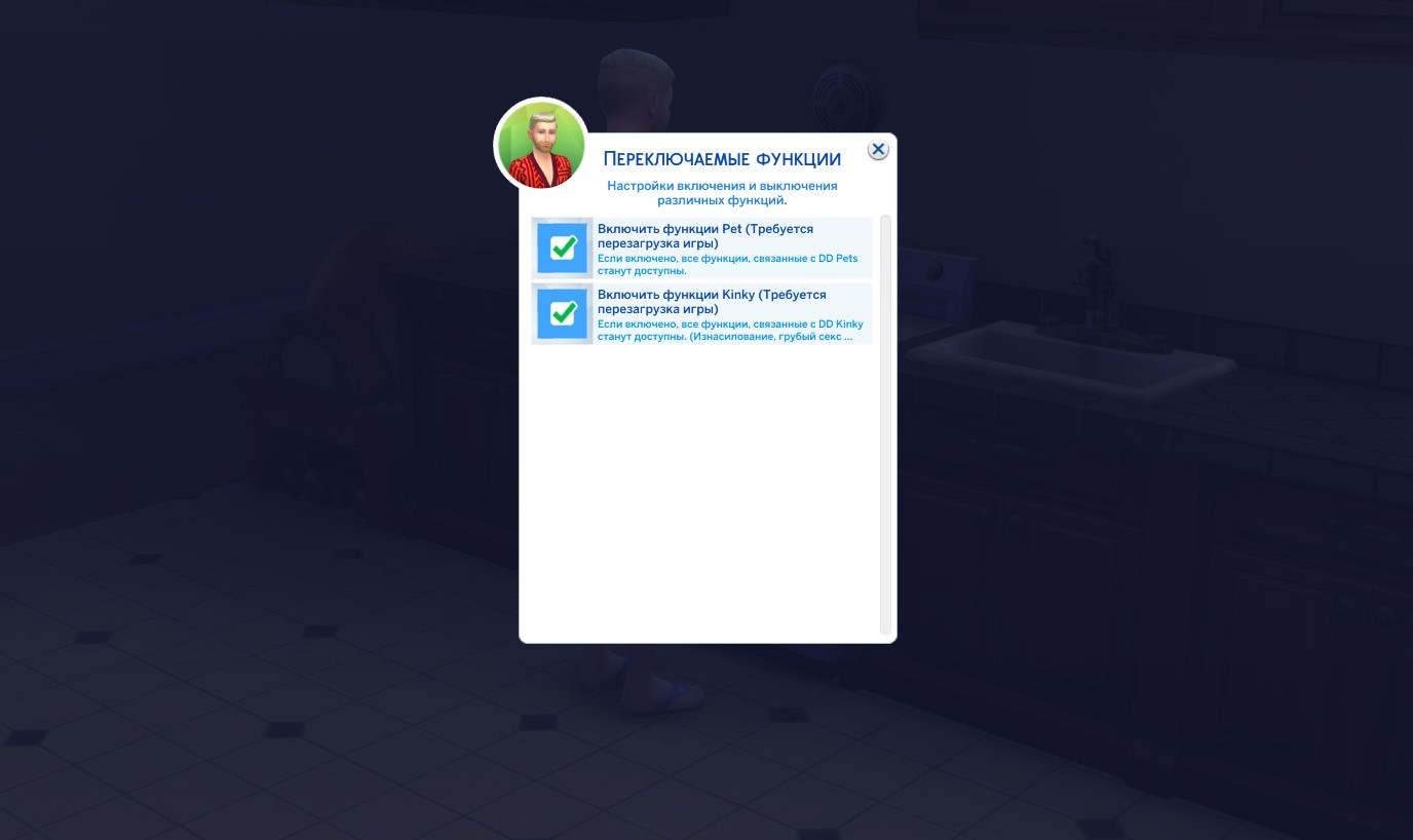 Поскольку этот мод содержит фетиши, которые многие из вас не любят и не желают видеть, каждый набор функций является модульным и по умолчанию отключен, так что вы можете самостоятельно включить только те функции, которые нужны вам! Например, DD Pets — один набор функций, а DD Kinky — другой. Оба набора отключены по умолчанию и, чтобы они заработали, вы сами должны включить их в настройках мода.