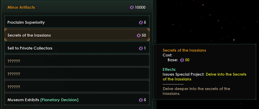 Также добавили некоторые дополнительные функции и награды к старым предтечам. Например, после того, как вы нашли родную систему Ирасса, теперь вы можете потратить незначительные артефакты, чтобы разгадать некоторые из секретов Ирасса. Новые действия артефактов не единственные новые вещи, есть еще множество интересных веще, которые вы сможете найти.