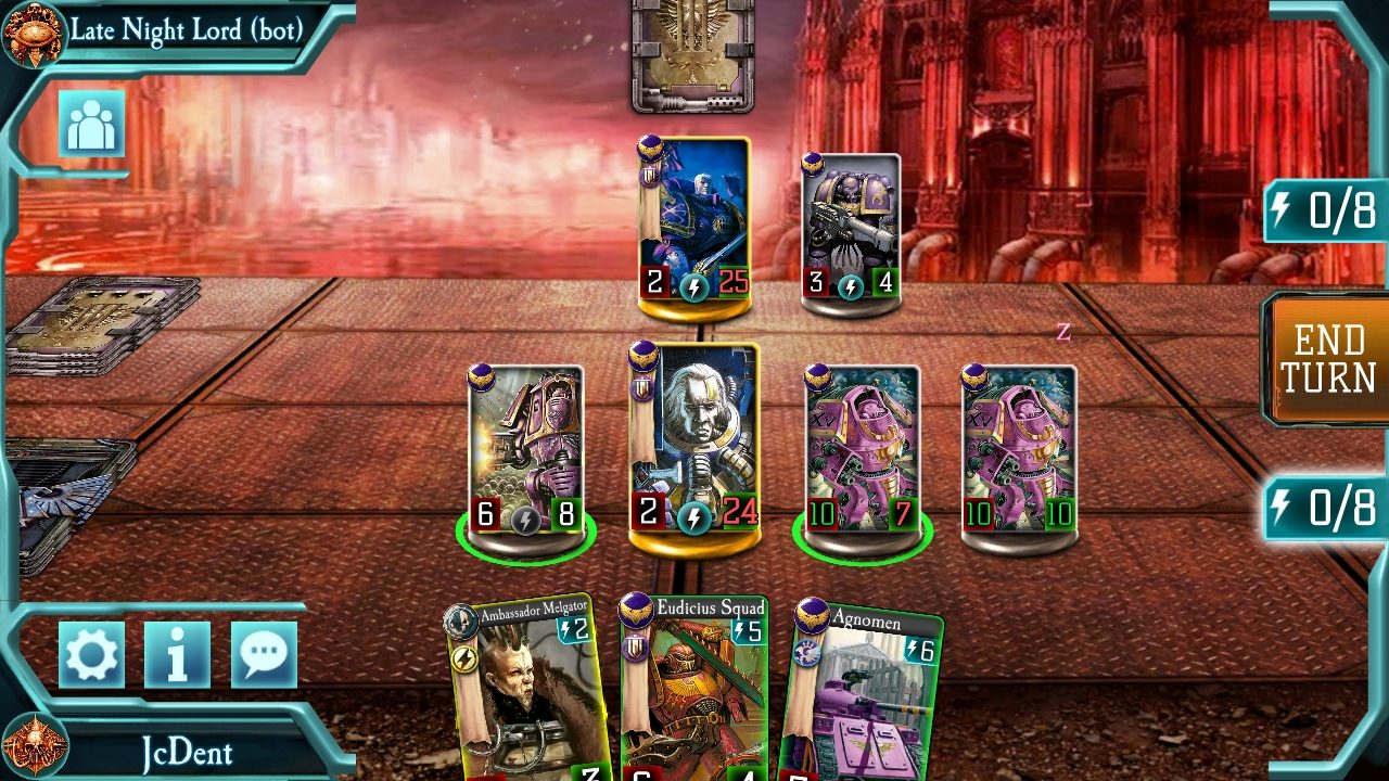 Horus Hersey: Legions – это типичная карточная игра с пошаговыми битвами. Хотя некоторые карты могут быть размещены на поле в любой ситуации, то для большинства из них требуются очки энергии, которые генерируется за каждый ход. Основная цель – уменьшить количество очков жизни противника до нуля, которые присваиваются командиру или базовой карте с начала игры.