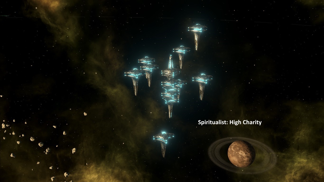 Данный мод добавляет в игру Stellаris 6 наборов кораблей Падшей Империи – Materialist (Материалист), Spiritualist (Спиритуалист), Xenophile (Ксенофил), Xenophobe (Ксенофоб), Militarist и Pacifist (Милитарист и Пацифист). У каждого корабля своя собственная модель.