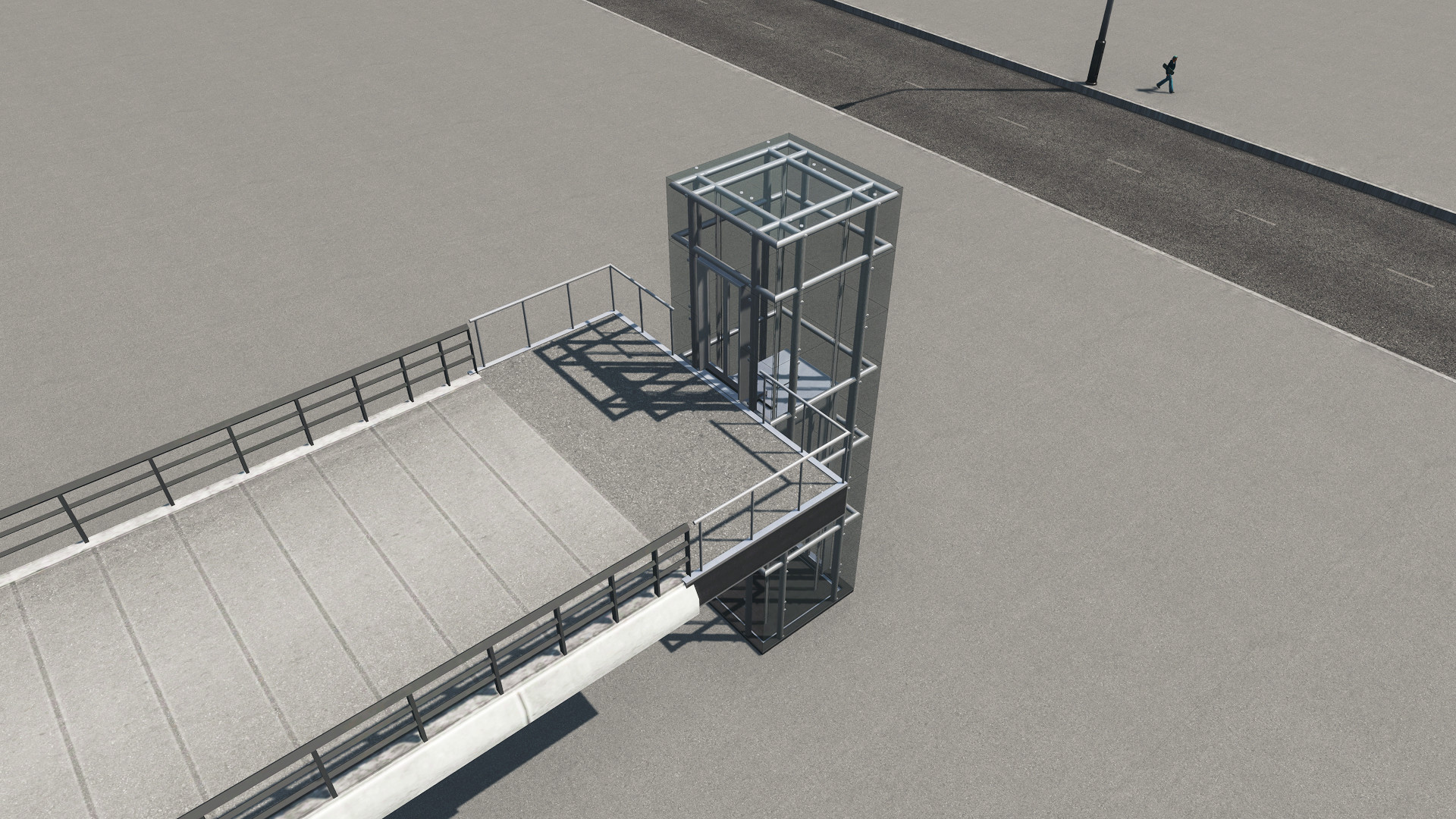 Также здесь есть невидимые подземные пути и балкон. Автор рекомендует не ставить лифты слишком близко к дорогам, а также рекомендует размещать при помощи Fine Road Anarchy.