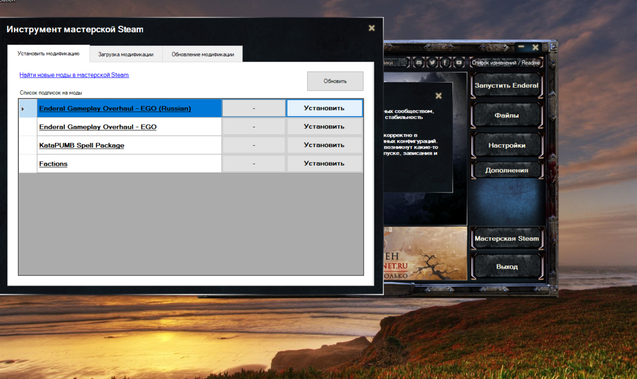 - Открываем лаунчер. нажимаем – Мастерская Steam, устанавливаем моды, отмечаем, сохраняем и играем.