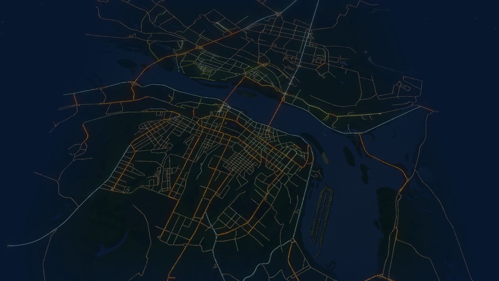 Карта города Днепр (Днепропетровск, Екатеринослав и даже шесть лет Новороссийск). Использовался верхний левый угол карты 48.556943,34.916730 (широта, долгота), правый нижний – 48.395246,35.161031.