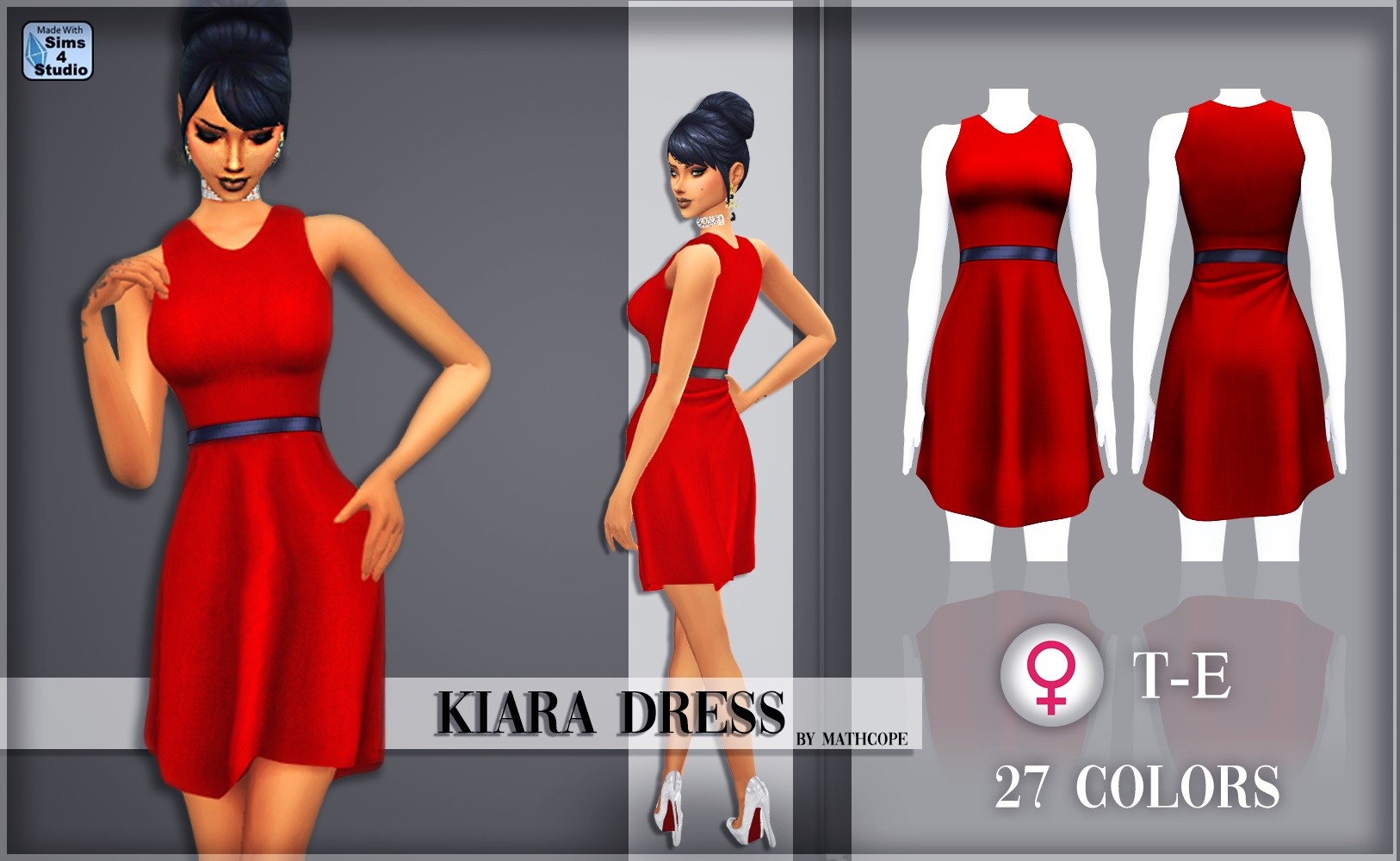 Вторая попытка автора сделать одежду Marvelous Designer. Для разнообразия добавлено много простых цветов и пользовательские миниатюры. Платье Kiara Dress работает с ползунками и морфами фигуры, она подстраивается под комплекцию сима.