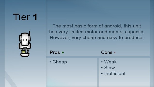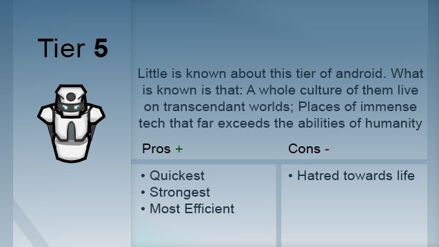 Новая серия андроидов, предназначенная для миссий по проникновению, их слегка модифицированный экзоскелет покрыт кожей и живыми тканями, которые предотвращают коррозию, оказывают лучшее социальное воздействие и защищают от ЭМИ и солнечных вспышек. Однако они более огнеопасны.
