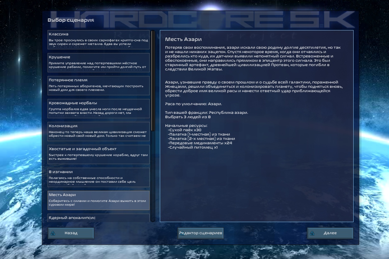 - новые сценарии и рассказчики, возможность тонко настраивать параметры стартовых колонистов и стартовый набор снаряжения;