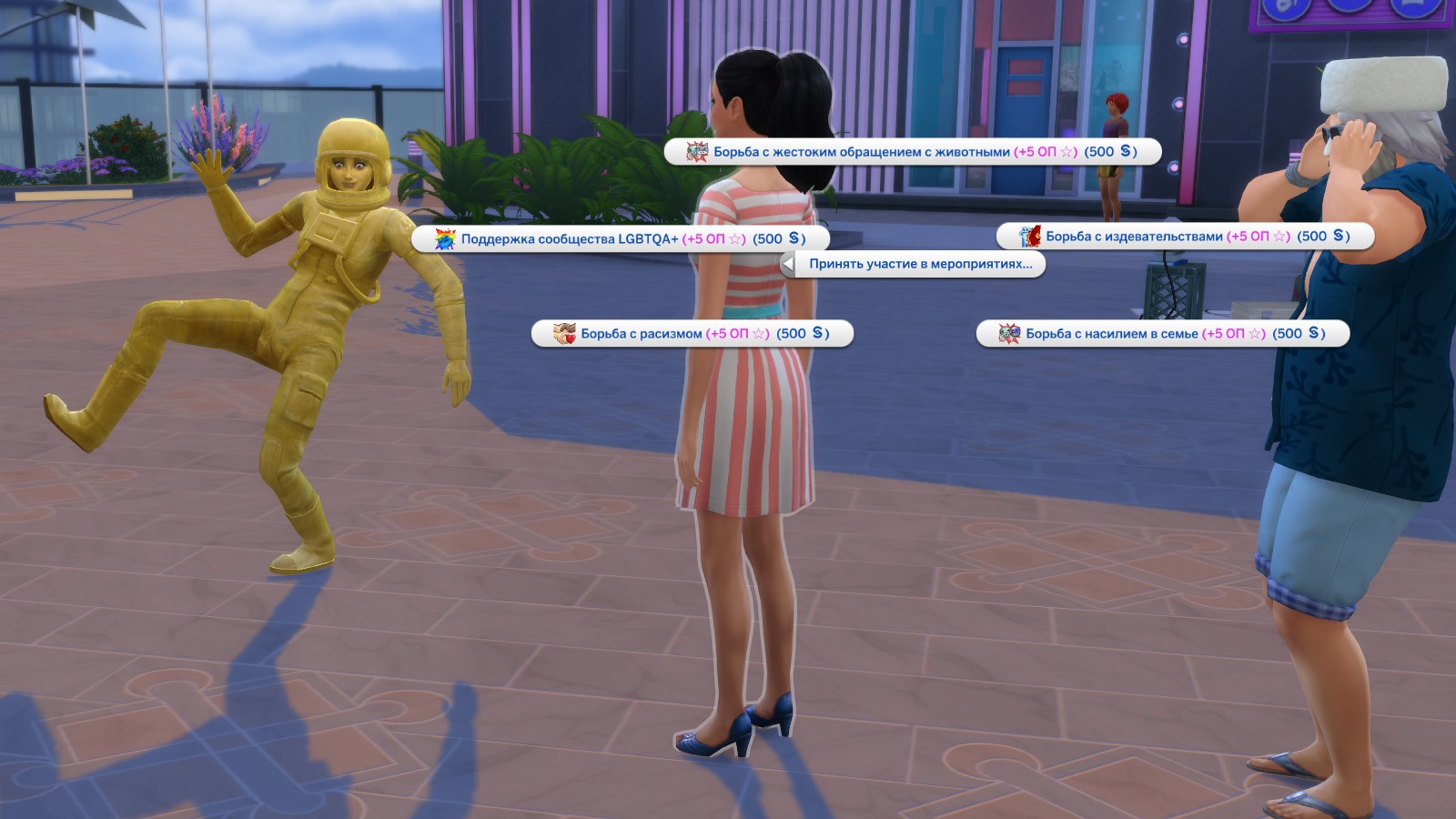 Приняв участие в любом из этих мероприятий, ваш персонаж получить +5 очков общественной популярности.