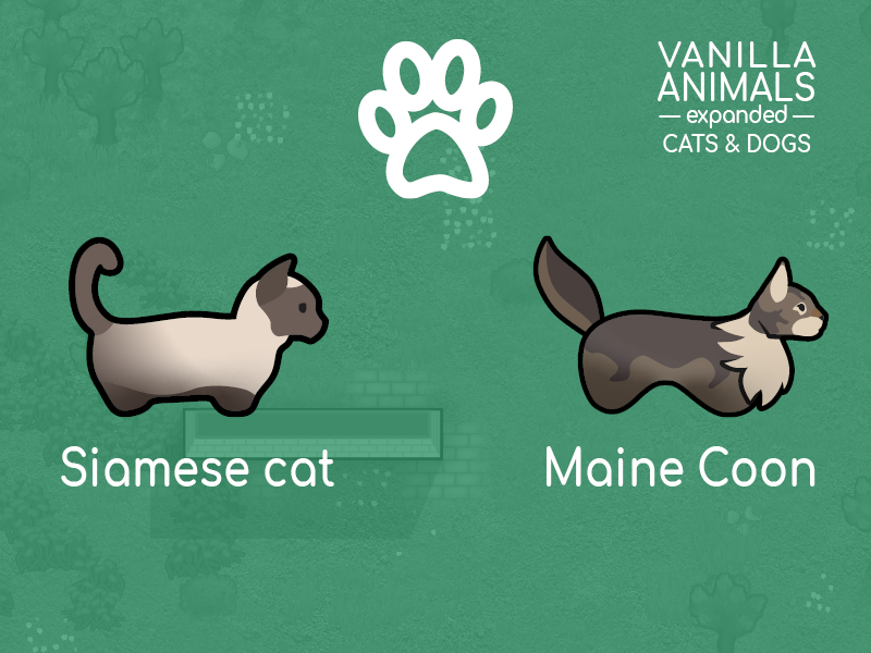 Данный мод добавляет большое разнообразия братьев наших меньших, а именно собак и кошек. 21 новая порода собак и кошек, идеально соответствовуют ванильной игре, с пользовательскими художественными работами, звуками и балансом.